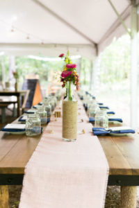 Rustic decor always has a great look and feel for a fall outdoor wedding. It adds an extra feeling of nature for the perfect outdoor setting. You can display wooden chairs, mason jars, and flower pots wrapped in burlap.Â