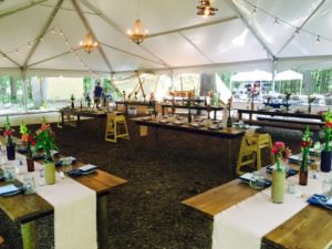 Fall evenings get darker earlier in the evening, so make sure you have plenty of lighting. Lanterns have that outdoor rustic feel like we mentioned earlier. We also recommend using strings of lights around the dance floor and seating area.Â